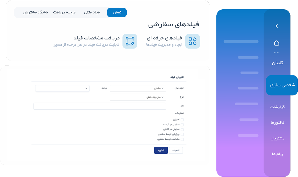ماژول فیلدهای سفارشی در الف CRM، امکان ایجاد انواع فیلد دلخواه برای هر بخش سیستم را فراهم میکند.