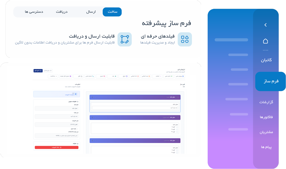 با قابلیت کشیدن و رها کردن، فیلدهای متنوع و ثبت خودکار پاسخها در پرونده مشتریان، جمعآوری اطلاعات سریع، دقیق و منظم انجام میشود.