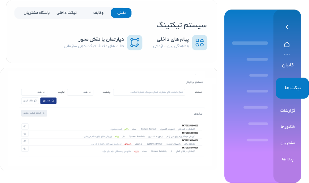 ماژول سیستم تیکتینگ در الف CRM، امکان ثبت، پیگیری و مدیریت متمرکز درخواستها و مشکلات مشتریان را فراهم میکند.