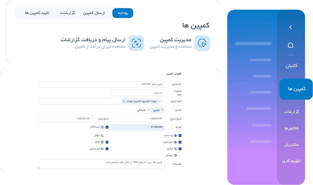 با الف CRM، کمپین تبلیغاتی را هوشمندانه اجرا و پیگیری کنید!